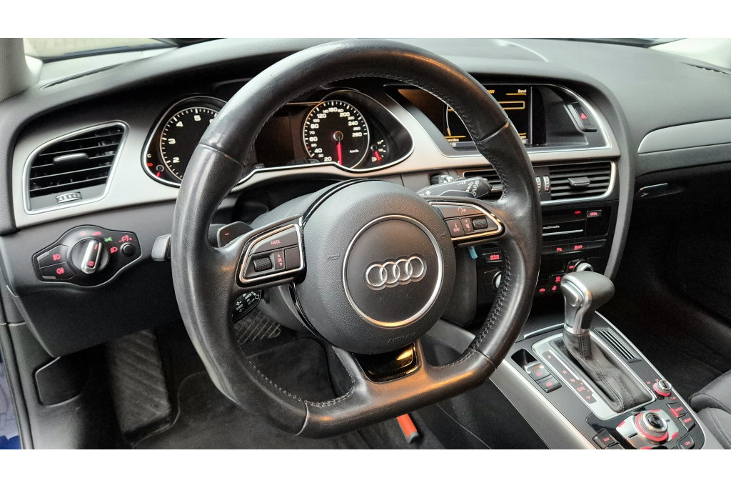 De auto is uitgevoerd in een prachtige blauwe metallic lak, wat zorgt voor een elegante en tijdloze uitstraling. Dankzij de praktische 5-deurs carrosserie en ruime bagageruimte is deze Audi A4 Avant ideaal voor zowel gezinnen als zakelijke rijders.
