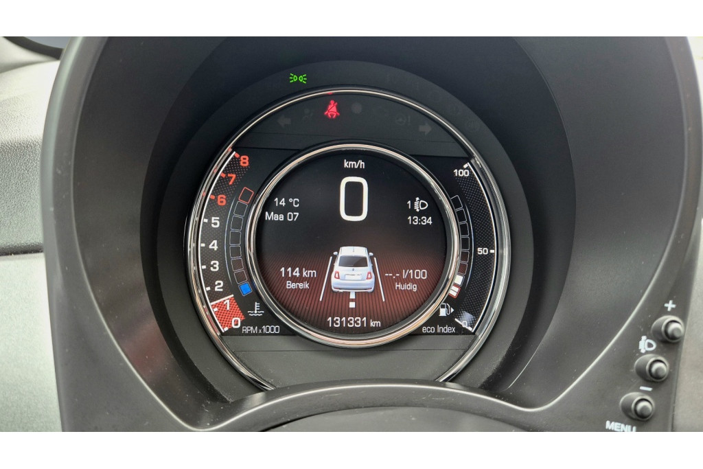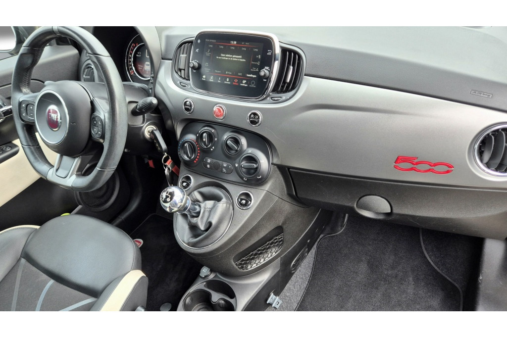 Deze Fiat 500 is voorzien van lichtmetalen velgen , die niet alleen zorgen voor een stoere uitstraling maar ook zorgen voor een comfortabele rijervaring. Het lederen stuur voegt een vleugje luxe toe aan het interieur van de auto, terwijl het multifunctionele stuur zorgt voor eenvoudige bediening van verschillende functies zonder uw handen van het stuur te halen.